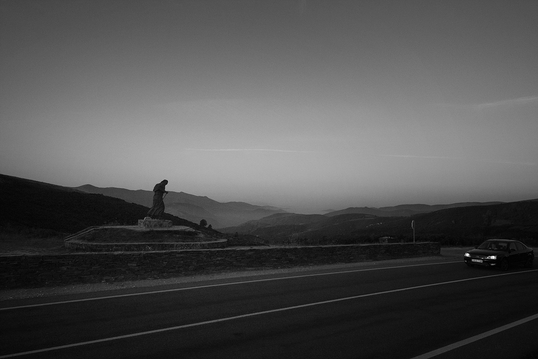 세브레이로의 한 도로에 있는 순례자 조각상..(산 로께언덕)