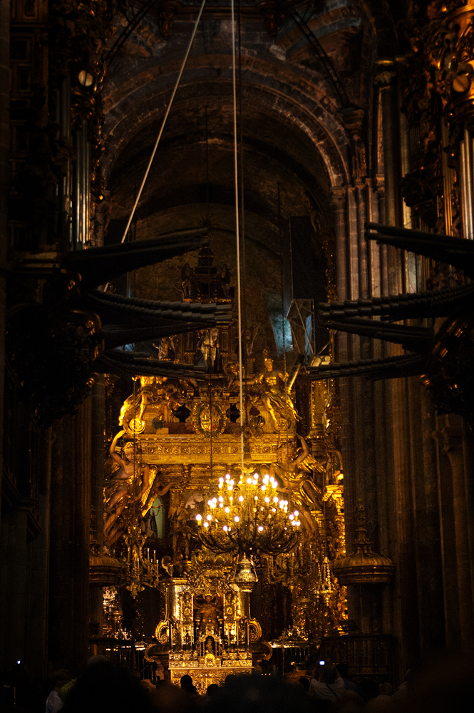 황금 빛의 꽤 무거운 향로가 성당 천장과 순례객들의 머리위를 가로지르며 축복을 전달한다.