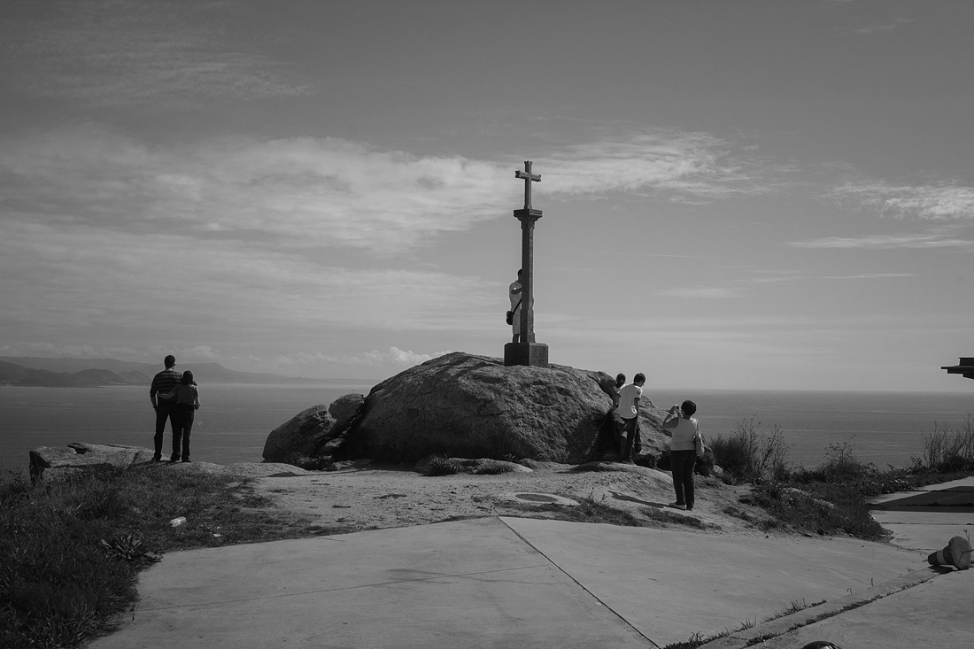 멀리 대서양과, 피니스테레 등대의 십자가..