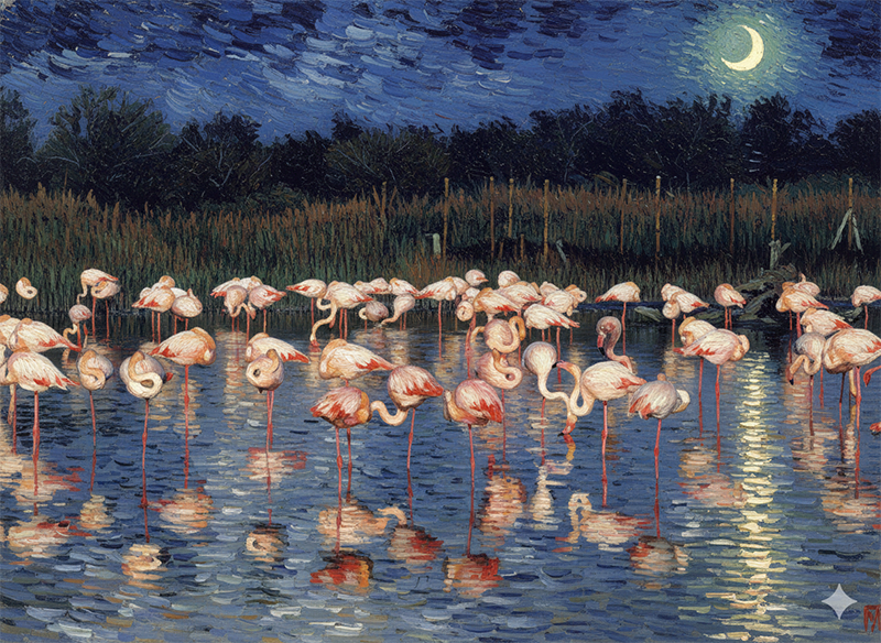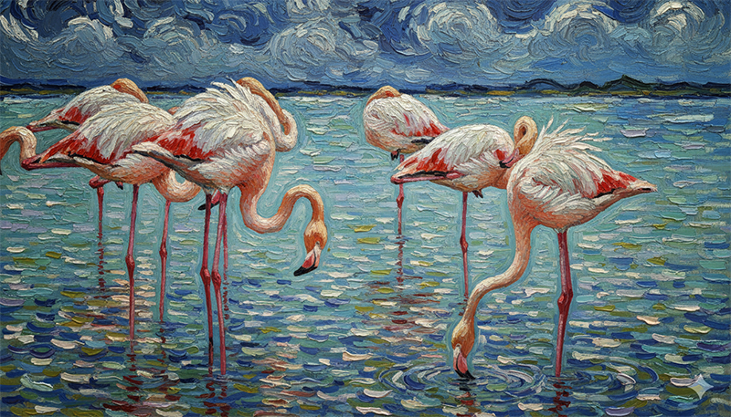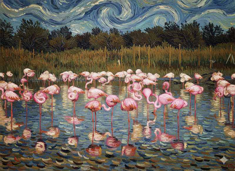 "... 고흐의 플라멩고 연작 시리즈 중에서.. 그가 프랑스의 카마르그 Camargue 지역에 머물때 그렸다고 하는 작품으로 이는 최근에 그려진 것으로 확인된다. 여전히 그는 그곳에서 기거하고 있는듯하다.. "
