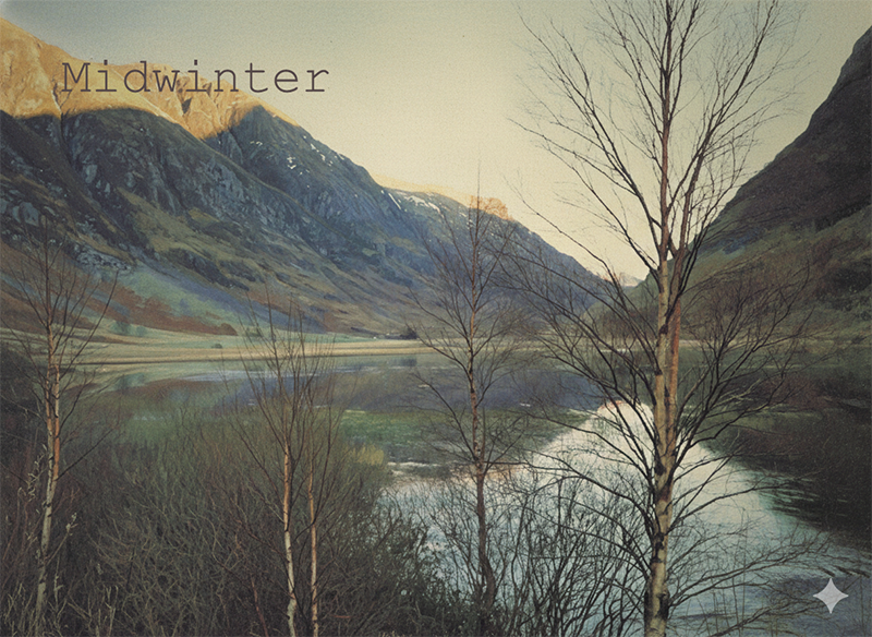 "... 1972년 결성되었다가 바로 해체한 영국의 포크 밴드 Midwinter의 초기 앨범 자켓으로 추정되는 사진인데, 작자 미상의 작품으로 이 사진은 아마도 스코틀랜드 어딘가 북쪽 부근의 호숫가에서 찍은 사진로 추정된다. Midwinter는 단 한장의 앨범을 남기고 사라진 실존한 Band이다. 그들의 앨범은 실제로는 93년에야 데모 테잎이 발견되며 발매되기에 이 사진의 진위여부는 확인이 좀 필요할듯하다... (ArtRock Magazine 2026호 발췌).."