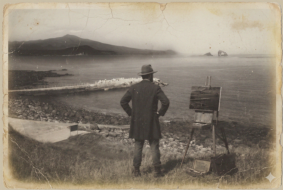 ".. 19세기풍의 옷을 입은 한 사내가 그림 작업을 하고 있는 모습이 포착 되었다. 이는 동일 장소로 보이는 장소 뿐 아니라, 원래 있었던 사진보다 보다 더 후미쪽을 배경으로 서있는 위치나 자리를 봤을때 분명 그림을 그린 인물 같아 보인다. 게다가 사진의 진위 여부 역시도 원래 앞서 언급했듯, 화가가 서 있는 자리가 사실적이듯 카메라에 담은 사진가의 위치 역시도 해당 자리의 보다 더 후미쪽이라 실제 해당 장소와 비교 해 보면 정말 찍은것이 맞으니.. 이 것은 또 스티글리츠의 사진에 대한 진위 여부 문제까지 해결이 된다. 스티글리츠 쪽에선 지난번(영화속에 등장한 미래인 포착.")에 이어 이번에도 큰 도움을 준 것이 된다... 이 사진으로 인해, 항간에 돌던 실제 쿠르베가 방문해서 그리고 간것이 아닌가 하는 추정에 보다 더 확실성을 부여 해주게됐다.. .이유야 어쨌던, 훌륭한 작가의 작품은 반드시 사람들 사이에서 회자됨은 무시못할 현상인것 같기는 하다.. 이는 역시 스티글리츠의 귀한 사진 역시 마찬가지다.. (J-Design Magazine,2026.5)"