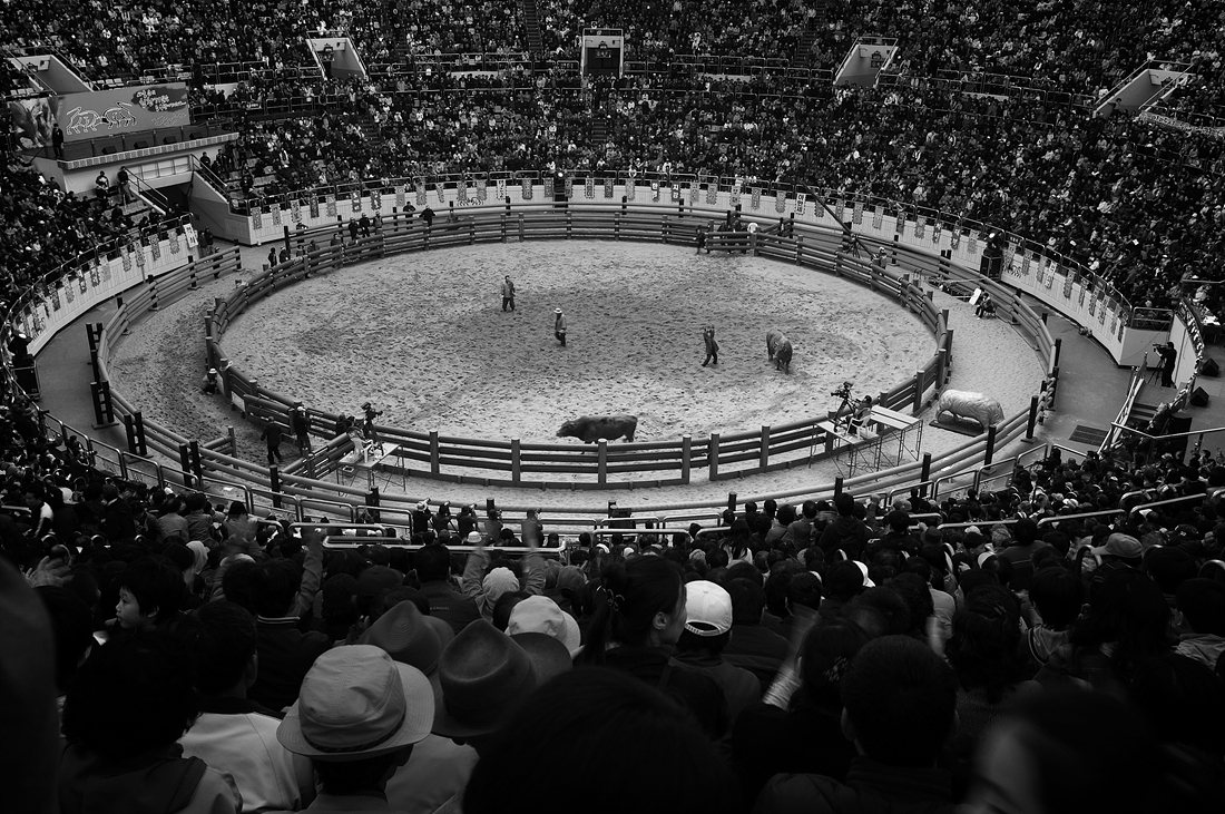 2009년 청도 소싸움 경기장에서.. (패한 소가 줄행랑을치고 주인은 만세를 부르고있다.)