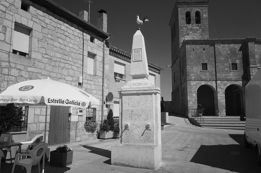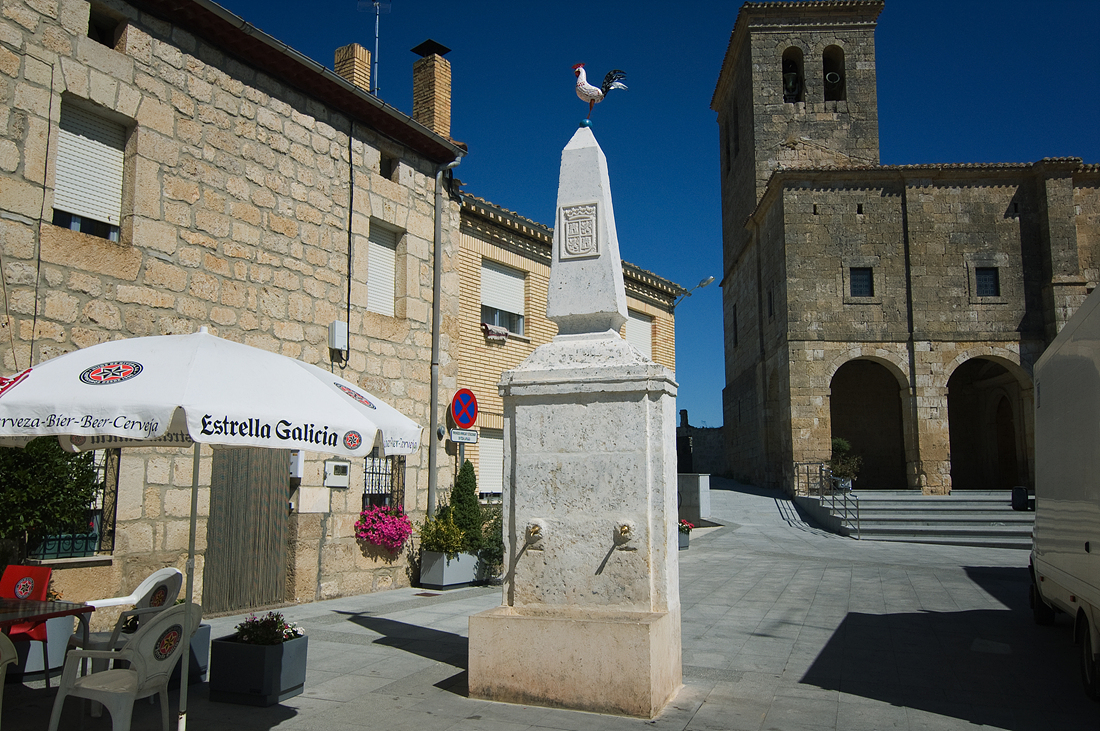 공식알베르게가 있는 교회와 마을의 작은 식수대..
