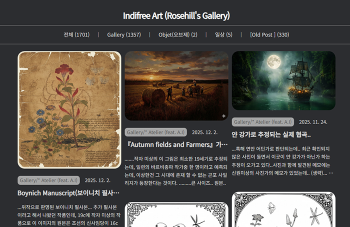 메인 포스팅은 rosehill.tistory.com에서 이뤄지나 갤러리나 이와 관련된 것들은 따로 티스토리 블로그에서 관리합니다.