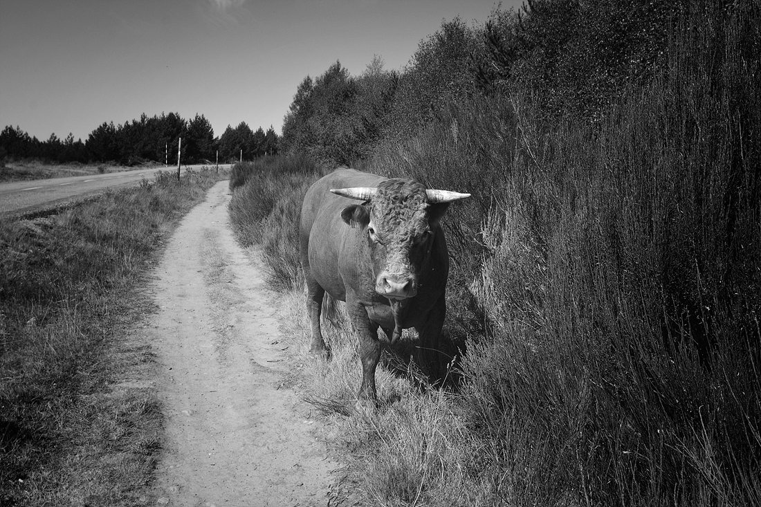 산맥을 넘어 내려가면서 마주한 황소..