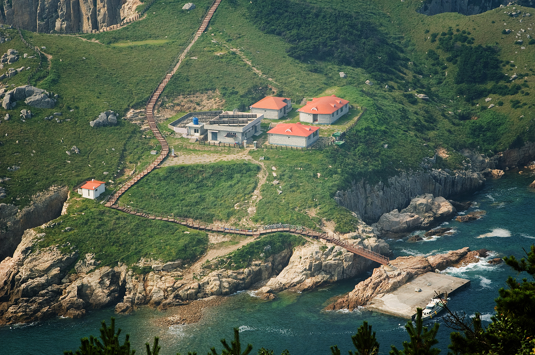 소매물도(등대섬)의 작은 선착장과 민가. 2006년