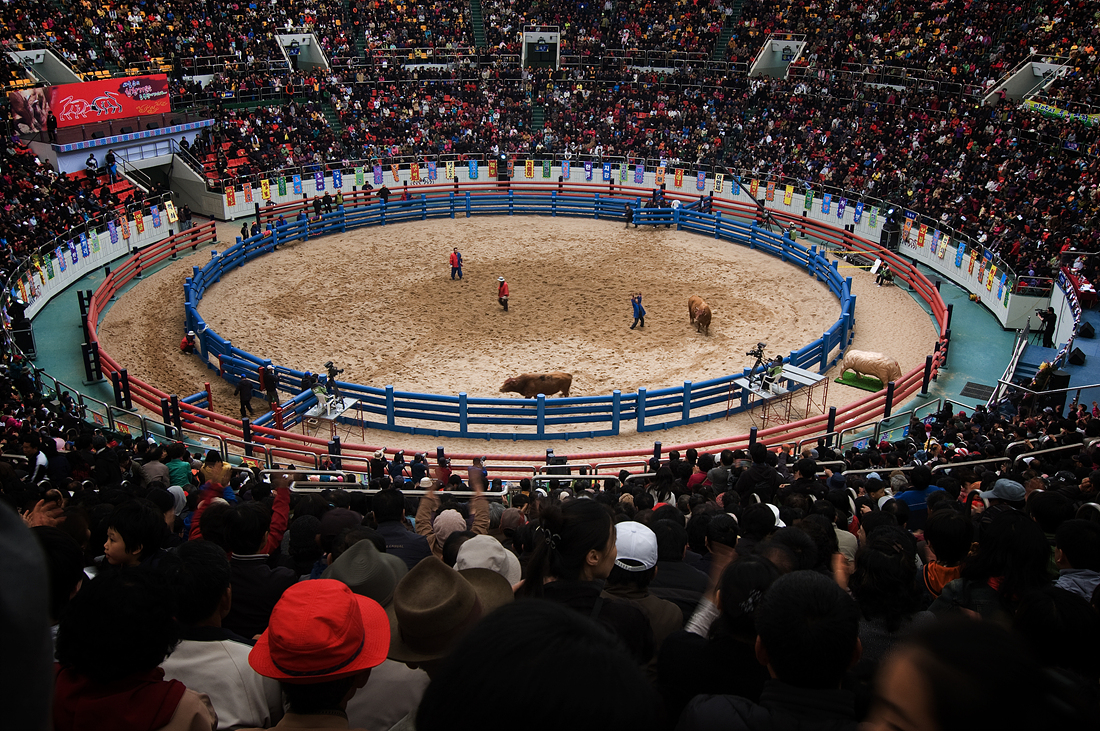 2009년 청도 소싸움 경기장에서.. (패한 소가 줄행랑을치고 주인은 만세를 부르고있다.)