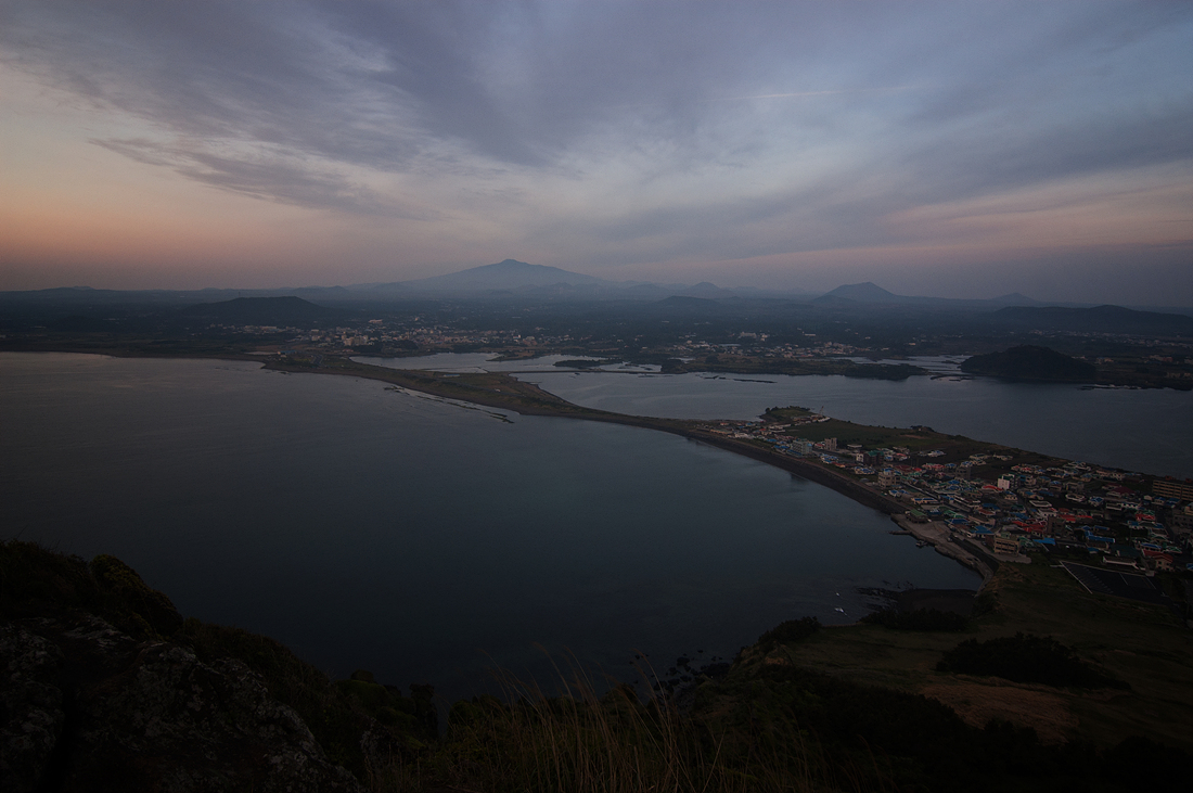 새벽 성산 일출봉에서 본 풍경.. (한라산이 보인다.)