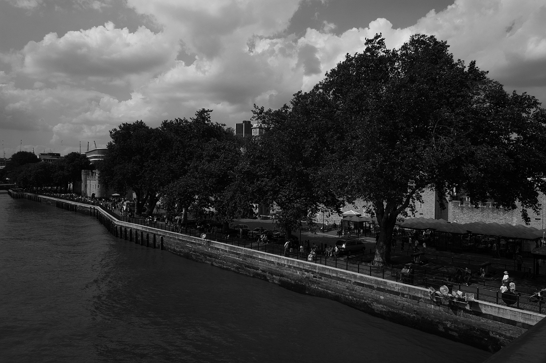 런던탑을 오른쪽으로 끼고 걸어가다 타워브릿지 진입하며 바라본 템즈강의 모습..