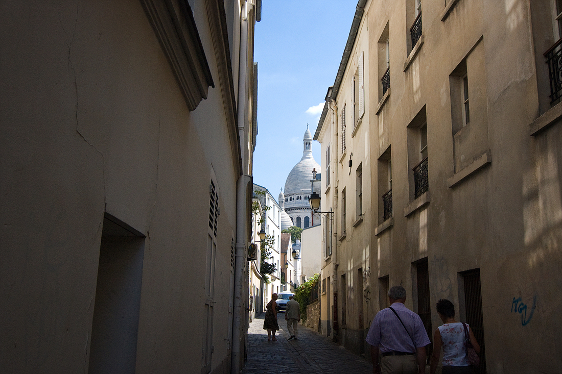 골목 끝에 '사크레쾨르(Sacre-Couer Basilica)'대성당이 보인다.