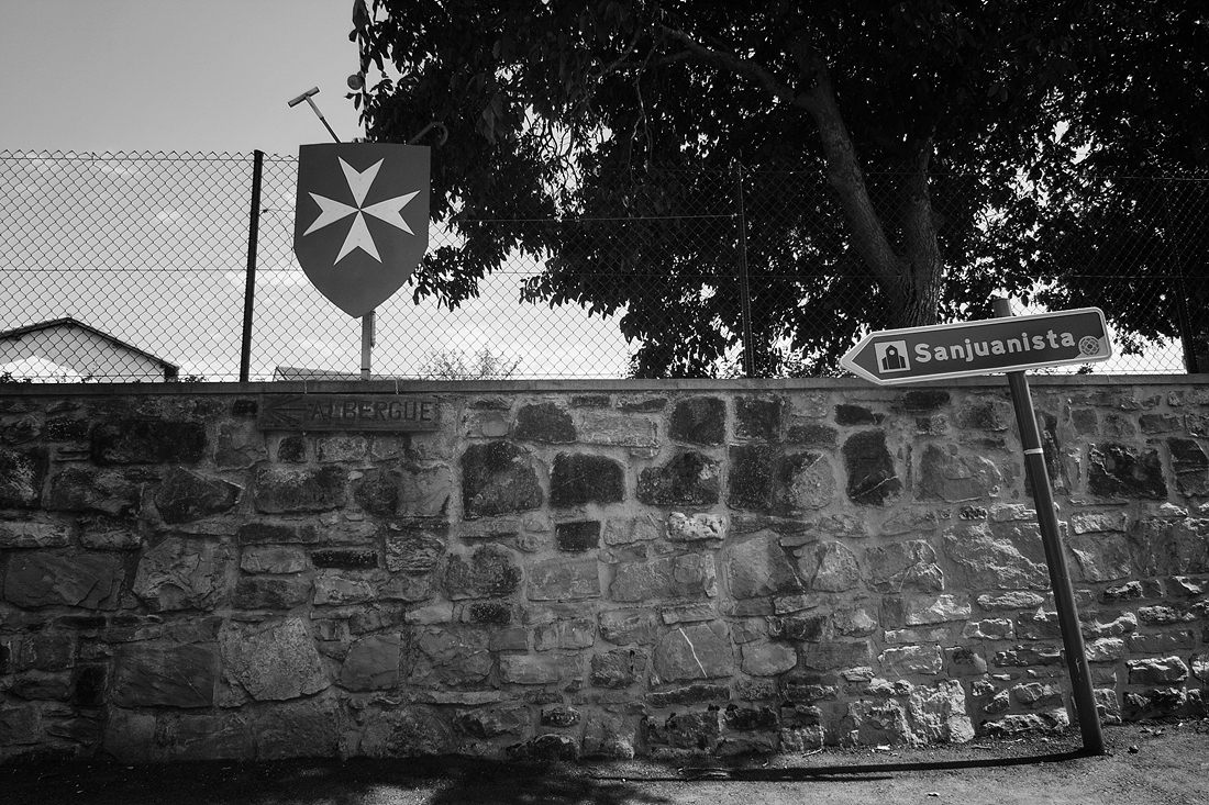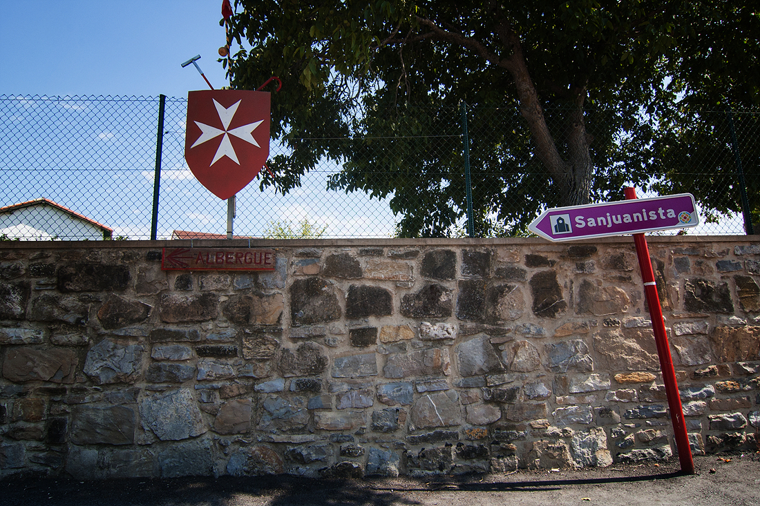 Cizur Menor 마을에 도착하고.. (알베르게의 표지판과 몰타 기사단의 상징)